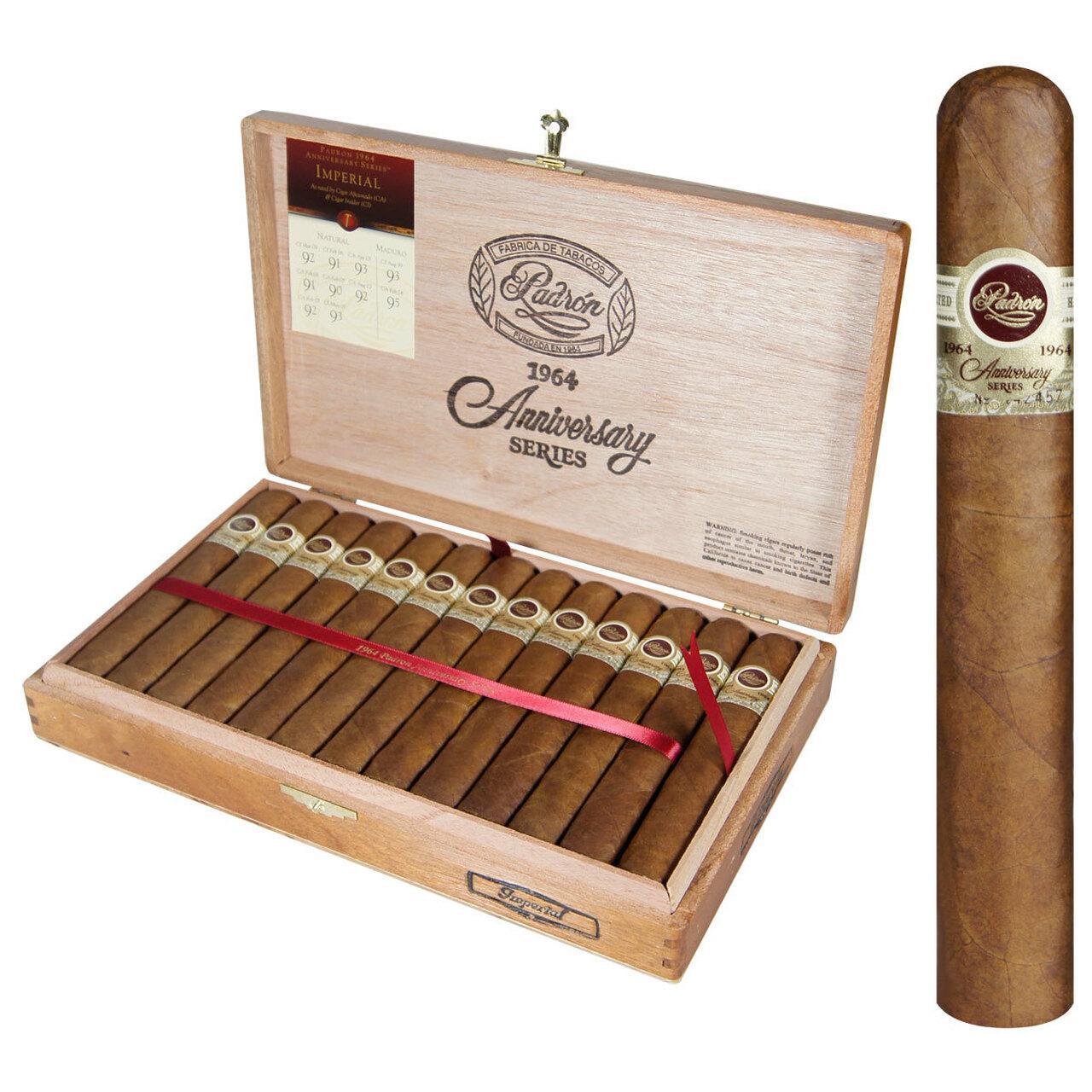 Padron 1964 Anniversary is an outstanding cigar in every respect. The well-aged, all-Nicaraguan blend boasts an exquisite array of flavors with a dark, earthy flavor at the forefront and creamy, leathery notes to follow. The choice in wrapper options further influences these flavors with the Maduro introducing a sweet chocolaty character and the Natural adding lighter notes of cream and cedar. The full-bodied strength is the perfect accompaniment. Regardless of your smoking preference, these cigars are absolute winners.